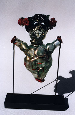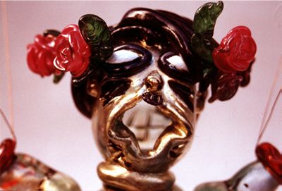 14"x8"x8" Blown, Sculpted and Painted Glass, Copper Wire 2001